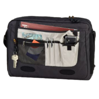 Diese Tasche bietet ein geräumiges Hauptfach, passend für A4-Ordner, mit zwei Einsteckfächern und gepolstertem Notebookfach mit Klettverschluss.