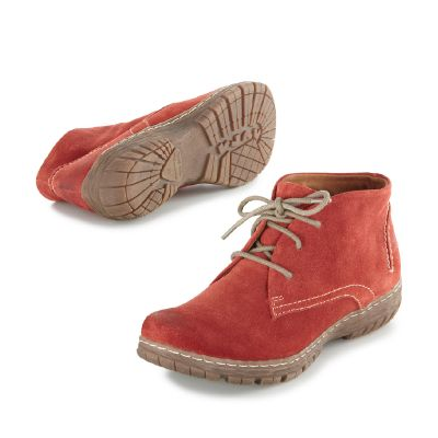 Ein stilbewusster Begleiter! Aus weichem Veloursleder, hübsche Ziernähte setzen Akzente, optimale Passform durch Schnürung, kuscheliges Textilfutter, profilierte Laufsohle