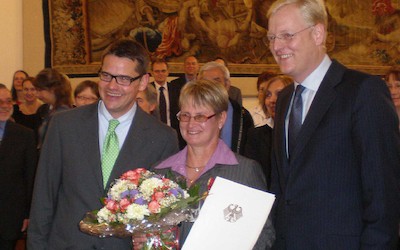 An den Feierlichkeiten zur Verleihung des Verdienstordens nahmen vom Deutschen Kanu-Verband teil: Hermann Thiebes, Ulrich Clausing, Jens Perlwitz (auch Präsident Hessischer Kanu-Verband) und Rolf Theis.