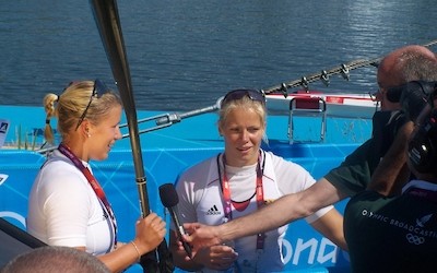 Dass sie bei ihrer Olympia-Premiere gleich mit zwei Medaillen, mit Gold im Zweier und Silber im Vierer nach Hause fahren würden, das hätten sich auch Franziska Weber (Potsdam) und Tina Dietze (Leipzig) nicht träumen lassen. Sie gewannen für den DKV im K2 über die 500m-Distanz das zweite Gold des Tages und distanzierten dabei die Olympiasiegerinnen von Peking Kovacs/Douchev-Janics um mehr als eine Sekunde. Bronze ging an das polnische Boot Naja/Mikolajczyk. "Das ist so unfassbar", meinte eine überglückliche Franziska Weber unisono mit ihrer Zweierpartnerin Tina Dietze. „Wir haben schon oft von einem perfekten Rennen gesprochen, aber das heute war noch mehr als das. Als wir am Start standen, war die ganze Aufregung zuvor verflogen und auf den letzten 100 Metern waren wir in einer so guten Position, da wusste ich, wir haben die Chance zu gewinnen.“ Auch Tina Dietze war noch nach der Siegerehrung hingerissen von dem, was da Minuten zuvor passiert war: „Mir fehlen immer noch die Worte“, sagte sie und bekannte zu ihrem bravourösen Rennen, „am Ende noch nie so viel Kraft gehabt“ zu haben.