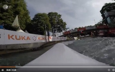 Der Zuschauer wird mit auf eine zweiminütige Fahrt im Einer-Kajak durch den Augsburger Eiskanal genommen. Dabei geht es natürlich entsprechend schnell und rasant zu. Wildwasser pur und vorbeifliegende Slalomtore sind in dem Video garantiert, das im Rahmen des Kanu-Slalom Weltcups am vergangenen Wochenende in Augsburg produziert wurde und nun in der Mediathek beim ZDF und Facebook zur Verfügung steht.