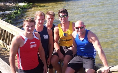 Ihre täglichen Paddeleinheiten mit dem Schwerpunkt Grundlagentraining absolvieren Tom Liebscher, Martin Schubert, Felix König, Jonas Ems und Ronald Rauhe (im Bild v. links nach rechts) bei zumeist guten Bedingungen auch schon mal zusammen mit den einheimischen Manatees und Delphinen, wie Martin Schubert berichtete. Und die haben auch in den Einheiten mit höherer Intensität den DKV-Assen noch etwas voraus. Bei letzteren steht indes neben vielen Paddelkilometern auch das Feilen an der Technik sowie reichlich Krafttraining auf dem Plan. Bei allem Training kommt aber auch der Spaß nicht zu kurz, wozu nach Mitteilung des Sprint-Bundestrainers unter anderem das gemeinsame Kochen beiträgt.
