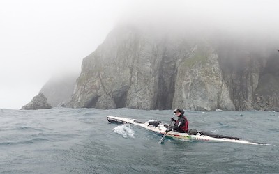 Es geschah bei ihrem 7.350. Paddelkilometer, dass sie auf dem Weg von Nelson Lagoon nach Port Heiden beim Anlanden durch die Brandung an der nördlich gelegen Küste der Aleutenkette, und zwar bei Cape Seniavin, ihr Seekajak zerbrach (Aleutenkette):