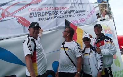Stellvertretend für die Ausrichterstadt nahm Uwe Philipp von der Regattastrecke der Stadt Brandenburg die Flagge entgegen. Als Leiter einer vierköpfigen Delegation hatte er zuvor gemeinsam mit Klaus-Dieter Preuss, Ingo Naber und René Fischer vom Brandenburger Regattateam für die Titelkämpfe in der Stadt an der Havel geworben und den in Montemor weilenden Nationen Informationsmaterial zur Verfügung gestellt. Zu den wichtigen Aufgaben des Brandenburger Besuches bei der EM in Portugal zählte u. a. die Abstimmung mit dem europäischen Verband über verschiedene organisatorische Aspekte der Titelkämpfe im kommenden Jahr. So interessierte sich die Delegation zum Beispiel für Erfahrungen, wie die in Montemor angewandte Fernseh-Übertragungstechnik auf einem Natursee wie in Brandenburg zum Einsatz kommen könnte. Uwe Philipp unterstrich zum Anliegen des Besuches: „Wir haben hier deutlich gemacht, dass Deutschland nach der WM in diesem Jahr in Duisburg auch mit der EM im kommenden Jahr bei uns in Brandenburg ein guter Austragungsort sein wird und wir aufbauend auf den Erfahrungen der EM 2009 sowie der JWM 2011 erneut eine schöne Veranstaltung organisieren werden.“