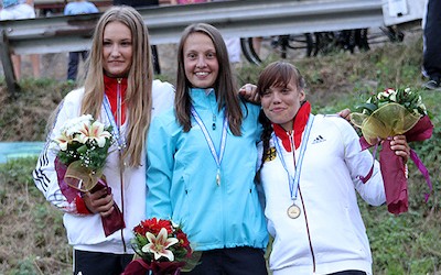 Zunächst gewannen Birgit Ohmayer (Augsburg) und Karolin Wagner (Leipzig) Silber und Bronze im Canadier-Einer der Juniorinnen hinter Martina Satkova aus der Tschechischen Republik. Elena Apel (Augsburg) war zuvor im Halbfinale als 14. ausgeschieden. „Mein Finallauf war nicht perfekt, es hat an ein paar Stellen gehakt, deswegen bin ich froh, Zweite geworden zu sein. Ich hätte das nicht gedacht, deswegen hatte ich auch keinen Präsentationsanzug zur Siegerehrung und musste mir die Sachen und Schuhe ausleihen. Ich bin ziemlich glücklich und freue mich ganz, ganz doll“, strahlte Birgit Ohmayer. Das tat auch Karolin Wagner: „Ich freue mich superriesig über den dritten Platz. Die beiden Berührungen hätten wirklich nicht sein müssen, aber es war ein guter Lauf und die Stimmung hier war prima. Schön am Ende wieder auf dem Podest zu stehen!“