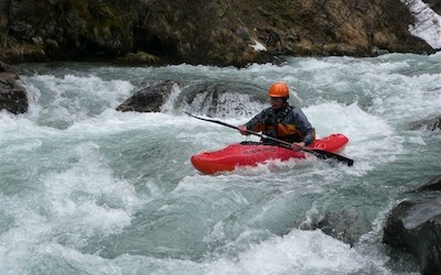 Beim Einsteigen in meinen Eskimo Salto zieht mich das klare und kalte Wasser mit einer ungeahnten Kraft flussabwärts. Mein Vorhaben, da Solo unterwegs, enge Kehrwasserlinien und nur auf Sicht zu fahren, wenn möglich und vertretbar, werden durch den unwiederbringlichen Flow schnell über Bord geworfen und schon beginnt die rasante Fahrt.
