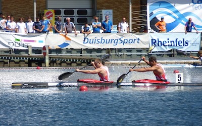Die beiden deutschen Flagschiffe, die Vierer-Kajaks der Damen und Herren, treffen auf der Regattastrecke an der Wedau ebenso auf eine sehr starke Konkurrenz. Während die Damen mit Carolin Leonhardt / Franziska Weber / Tina Dietze / Katrin Wagner-Augustin ihren Vorlauf gewinnen konnten, mussten die Herren mit Marcus Groß / Norman Bröckl / Max Hoff / Tim Wieskötter noch das dänische Boot passieren lassen.