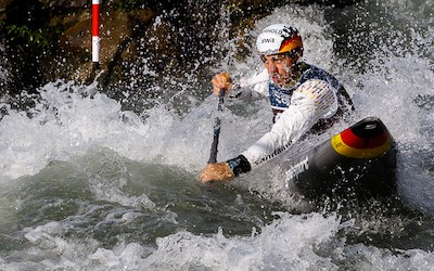 Im Kajak-Einer der Herren ärgerte sich Sebastian Schubert (Hamm) im Ziel über den vierten Platz und eine verpasste Medaille. „Ich war eigentlich ganz gut unterwegs, habe eine Kombination von Tor 18 auf 19 nicht so gut erwischt, das hat bestimmt zwei Sekunden gekostet. An sich war ich gut drauf dieses Wochenende, die Zeiten passen wieder. Ich weiß jetzt, dass ich schnell genug bin, um Medaillen machen zu können“, nimmt der 27-jährige eine Portion Selbstvertrauen mit in Richtung Weltmeisterschaft Mitte September. Den Tagessieg ging an Peter Kauzer (Slowenien) vor Mathieu Doby (Belgien) und Lucien Delfour (Australien). Kurios: Die ersten Drei trennte jeweils nur eine hundertstel Sekunde. Hannes Aigner und Alexander Grimm (beide Augsburg) belegten im Halbfinale die Ränge 21 und 24.