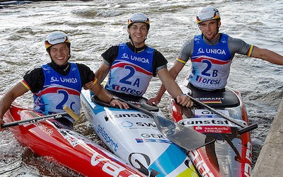 Ebenfalls auf den vierten Rang fuhr Sideris Tasiadis (Augsburg) im Canadier-Einer der Herren. Als Sieger des gestrigen Halbfinales war der Olympiazweite als Letzter auf den schwierig ausgehangenen Finalkurs gegangen, eine Torstabberührung kostete den Sprung aufs Podest. „Die Berührung ärgert mich schon ein bisschen, ich habe die Stange ganz knapp mit dem Paddelknauf berührt. Ich wusste, dass man mit der Halbfinalzeit nicht gewinnen würde und wollte eigentlich zwei Sekunden schneller sein. Das Ziel war schon eine Medaille, aber sauer bin ich nicht“, sagte Sideris Tasiadis. Weltmeister wurde der Brite David Florence vor Alexander Slafkovsky (Slowakei) und dem Slowenen Benjamin Savsek.