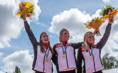 Weltmeisterinnen wurden am Fuße der Pyrenäen die Damen im Kajak-Einer. Weltcup-Gesamtsiegerin Ricarda Funk (Bad Kreuznach), Jasmin Schornberg (Hamm) und Lisa Fritsche (Halle/S.) paddelten im Wildwasserstadion von Pau die schnellste Zeit und blieben fehlerfrei. Das deutsche Trio gewann vor den Mannschaften Österreichs und Australiens. „Der Lauf lief sehr gut und flüssig, wir konnten alle konstant weiterfahren, trotzdem war es sehr schwer einzuschätzen, wo wir am Ende liegen werden“, fand Ricarda Funk, die mit ihren Teamkolleginnen bereits als vierte von 17 Mannschaften auf den Kurs gegangen waren. Jasmin Schornberg empfand es als „cool, dass wir die ganzen anderen Teams noch beobachten und mitfiebern konnten und dass es am Ende wirklich keiner mehr geschafft hat, davor zu fahren. Wir haben uns mega gefreut!“ Lisa Fritsche schätzte mit Blick auf die österreichische Konkurrenz, die sich eine Berührung leistete, ein, „dass es am Ende wichtig war, Null zu fahren. Wir können echt zufrieden sein, das war ein guter Start in die WM!“