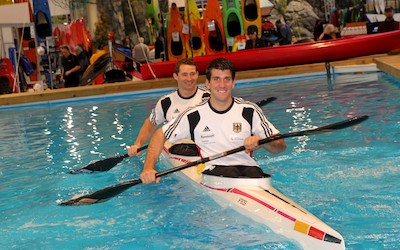 Aktionsbecken der Halle 13 die ersten Paddelschläge in einem