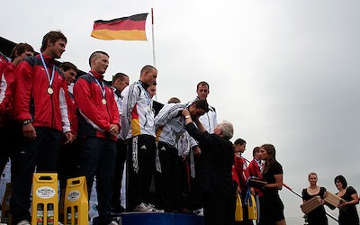Gold gab es ebenfalls für die Canadier-Zweier mit Robert Behling/Thomas Becker (Schkopau), Kai und Kevin Müller (Magdeburg) und Holger Gerdes/Jan-Philip Eckert (Hohenlimburg). Sie distanzierten die Teams der Tschechischen Republik und Polens. „Der Abstand zwischen den Booten war genau richtig, wir konnten immer weiter fahren“, freute sich Robert Behling über den gelungenen Auftritt vor heimischem Publikum. „Wir sind fehlerfrei geblieben, Null gefahren, das war gut“, stimmte sein Zweierpartner zu. Auch Kai Müller war mit der Leistung glücklich: „Wir haben uns gegenüber dem Halbfinale noch einmal um vier Sekunden verbessert. Jetzt wünsche ich mir auch für morgen eine Medaille. Wir sind fit und immerhin Titelverteidiger, aber die Konkurrenz hier ist auch sehr stark.“