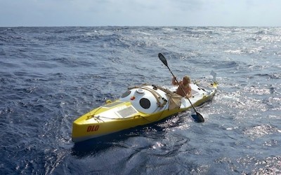 Er ist schon ein „Pechvogel“; denn seit dem 5.10.13 ist er unterwegs auf dem Atlantik und versucht mit Hilfe von Paddel, Wind & Strömung Florida zu erreichen. Dabei ist er –zig Male vom Wind rückwärts bzw. im Kreis herum getrieben und zwischenzeitlich zu den Bermudas (24.2.13) abgetrieben worden. Nach einem 1-monatigen Zwangsaufenthalt auf den Bermudas, um: