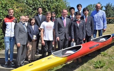 Wenn junge Leute miteinander Sport machen, lernen sie sich kennen, und wer sich kennt, hat keine Vorurteile“. Mit diesen Worten unterstrich Niedersachsens Minister für Inneres und Sport, Boris Pistorius,bei einem Besuch im Landesleistungszentrum des LKV die Bedeutung des Sports für das Miteinander über Grenzen hinweg. Er begrüßte ein junges Kanuteam aus Japan, das auf Einladung des LKV für gut eine Woche in Niedersachsen zu Gast ist und machte sich ein Bild von den Trainingsbedingungen am Stichkanal in Hannover-Ahlem.