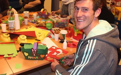 Für seine Tochter Hanna bastelt er mit viel Liebe zum Detail ein kleines Osterkörbchen. Dieses wird später vom Osterhasen mit Ostereiern gefüllt und im Kindergarten versteckt. „Auch wenn ich sonst das Basteln lieber meinen beiden Frauen überlasse, freue ich mich auch mal was für Hanna zu basteln.“