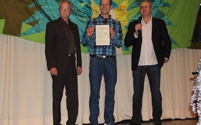 Blau-Weiss Vorstand Wolfgang Krauß und Bernard Verhoef überreichten Max Hoff die entsprechende Urkunde auf Grund seiner außerordentlichen sportlichen Leistungen bei den olympischen Spielen 2012.