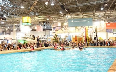 In Halle 13 sind die Hersteller und Händler der Kanubranche rund um das Aktionsbecken gemeinsam mit dem Deutschen Kanu-Verband vertreten. Das Programm auf der Bühne und im Becken wurde vom DKV erstellt und enthält zahlreiche Highlights rund um den Kanusport. Kanu-Wildwassersport, Kanu-Polo, Kanu-Freestyle und Kanu-Slalom werden mit Hilfe engagierter Vereine vorgestellt. Dennoch steht das Schnupper- und Einsteigerpaddeln und somit der Freizeitsport für die Besucher der Messe im Vordergrund. Täglich gibt es mehrere Möglichkeiten die ersten Paddelschläge im Kajak oder im Canadier zu machen. Der DKV, die Kanu-Jugend und die Lehrer der Kanuschule NRW stehen mit fachkundigen Tipps und der helfenden Hand für Einsteiger zur Seite. Am ersten Wochenende und unter der Woche konnten bereits viele Zuschauer für das Paddeln begeistert werden und finden hoffentlich auch den Weg in die Kanu-Vereine.