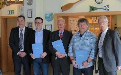 Drei langjährige Mitarbeiter aus der Führung des Verbandes hatten sich entschieden, in Datteln nicht mehr für eine weitere Amtsperiode zu kandidieren. Wolfgang Hanemann hat als Vizepräsident zwölf Jahre lang die Finanzen des Verbandes mit großem Geschick gelenkt und war seit 2007 als Außenstellenleiter für die Kanuschule NRW verantwortlich. In den beiden olympischen Sparten Kanu-Rennsport und Kanu-Slalom haben die Sportwarte Dr. Paul Sebastian Hager und Ralf Kriegel, die 16 bzw. 14 Jahre lang in ihrer Sparte tätig gewesen sind, erheblichen Anteil an den zahlreichen nationalen und internationalen Erfolgen nordrhein-westfälischer Sportler. Vize-Präsident Bernard Verhoef hat die Verdienste jeweils in einer kurzen Laudatio prägnant herausgestellt. Auf Antrag des Präsidiums wurden Wolfgang Hanemann, Dr. Paul Sebstian Hager und Ralf Kriegel vom Verbandstag einstimmig zu Ehrenmitgliedern des Kanu-Verbandes NRW ernannt. Auch Thomas Konietzko würdigte die Verdienste der drei Amtsinhaber um den Kanusport in Deutschland.