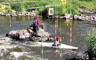Standesgemäß begann die Meisterschaft am Freitag Abend mit einem feierlichen Einmarsch aller Sportler, gefolgt von Reden der Ehrengäste. Neben Vertretern der Stadt Bad Kreuznach ließ es sich auch der Lokalmatador Thomas Schmidt (Olympiasieger im Kanu-Slalom von 2000) nicht nehmen, ein paar Worte an die Sportler, Eltern und Betreuer zu richten. Danach konnten alle gespannt die Streckenvorfahrt für die Qualifikationsrennen beobachten und sich u.a. von den beiden Nationalmannschaftsfahrern Kira Kubbe und Tim Bremer Fahrtipps für die eine oder andere knifflige Passage abgucken.