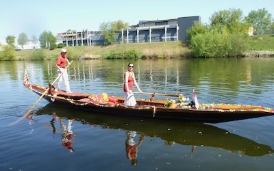 Drachenbootfahrer und Gondoliere starteten oberhalb des