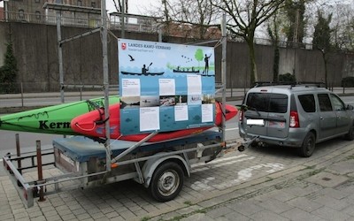 Die Druckdatei ist für ein Format von 160 mal 120 Zentimetern angelegt und kann auf verschiedene Trägermaterialien gedruckt werden. Für die Außenwerbung eignet sich zum Beispiel PVC-Plane mit Rundumösen, die am Bootshaus oder bei Veranstaltungen präsentiert wird. Denkbar wäre auch ein verkleinertes Poster für einen Schaukasten. Der LKV stellt die Druckdaten bereit, interessierte Vereine müssen die Produktion selbst veranlassen und bezahlen. Eine PVC-Plane zum Beispiel ist relativ günstig und kostet etwa 35 Euro.