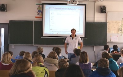 Zahlreiche Fragen zum Lernprozess an der Schule, zur Unterbringung im Internat und zum Training am Landesstützpunkt beantworteten im mit ca. 100 Personen prall gefüllten Klassenraum der Vertreter des LKV Brandenburg Michael Tümmler ebenso ausführlich wie die zuständigen Lehrer/ Trainer und die Internatsleiterin. Andererseits schilderten mit Fabian Schatz und Stine Noack zwei Kanu-Siebenklässler aus ihrer Sicht sehr anschaulich ihren Tagesablauf an Schule und beim Training und bestärkten damit sicherlich auch die gespannt zuhörenden Gäste in ihrer Absicht, einen Antrag zur Aufnahme an der Sportschule zu stellen. Von den an diesem Tag erschienenen interessierten 30 Nachwuchskanuten kann allerdings nur etwa die Hälfte nach erfolgter Auswahl auf eine Zusage hoffen. Für die jungen Rennkanuten stehen für 2013 in der gemischten siebenten Klasse Kanusport/ Volleyball weiblich lediglich zwölf Plätze zur Verfügung. Dazu kommen weitere vier Plätze, die an so genannte ältere Quereinsteiger vergeben werden.