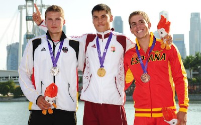 Bei den ersten olympischen Jugendspielen wurde er erst im Finale vom Ungarn Sandor Totka knapp geschlagen. Das neue Format kam bei den Zuschauern und Medien gut an. In der vierten von insgesamt 8 Runden konnte Tom Bestzeit fahren und sich mit einem Sieg über Zelnychenko UKR fürs Halbfinale qualifizieren. In der 5. Runde schlug er dann den Weißrussen Tsarykovich und traf im Finale auf Totka, der nicht zuletzt aufgrund der besseren Bahn knapp gewann. Generell wurde bei den Spielen (im englischen bekannt als YOG) deutlich, daß der Stellenwert dieser Spiele in anderen Ländern dem der "großen" Olympischen Spiele sehr nahe kommt und dafür viel investiert wurde.