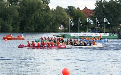 Das Siegerboot im Rennen der Sponsorenmannschaften hatte sich die im Schweiße des Angesichts erpaddelte Prämie, je Besatzungsmitglied eine Flasche Sekt, gar selbst spendiert. Denn der REWE-Markt Grube Potsdam belegte als Sponsor für die Siegprämien in seinem Rennen den ersten Platz vor dem OSC-Präsidium und der Belegschaft von der Fa. Stoof international. Großen Jubel löste auch der Sieg bei der Bootsbesatzung des Auswärtigen Amtes im Botschaftsrennen vor den Vertretungen von Venezuela und Frankreich aus. Ob der Dienstherr Guido Westerwelle auch ein Schlückchen Rotkäppchensekt abbekommt, wurde allerdings nicht verraten.