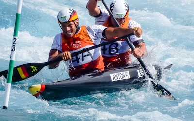 Wie bereits gestern im Kajak-Finale und auch tags zuvor im Canadier-Einer so ging es für das DKV-Team auch heute in der Entscheidung im Canadier-Zweier unglaublich eng zu und das Glück war nicht auf der Seite der Deutschen. Franz Anton und Jan Benzien gingen als Beste des Halbfinals zuletzt auf den Olympiakurs und lagen zwischenzeitlich 1,4 Sekunden vor den späteren Olympiasiegern Ladislav und Peter Skantar (Slowakei), am Ende fehlten dem sächsischen Duo 36 hundertstel Sekunden auf Bronze. „Wir haben an Tor 22 wesentlich an Zeit verloren. Ich habe im ersten Moment gedacht, dass es vielleicht trotzdem noch zu Platz zwei oder drei reicht, wo wir uns auch drüber gefreut hätten“, konstatierte Jan Benzien enttäuscht. Silber gewannen die Briten David Florence/Richard Hounslow, Bronze ging an die Franzosen Gauthier Klauss/Mathieu Peche. Daran, dass dies die letzte olympische Entscheidung in dieser Kategorie gewesen ist, wollte Franz Anton im Moment keinen Gedanken verlieren: „Ich bin gerade Vierter. Der Gedanke kommt vielleicht nächstes Jahr, wenn man realisiert, dass man mit dieser Disziplin vielleicht gar nicht mehr unterstützt wird“, so der Vordermann des Duos, der sich wie Jan Benzien wohl künftig auf den Canadier-Einer konzentrieren wird.